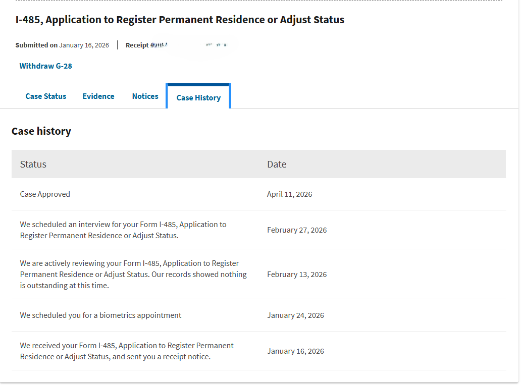 I-485 receipt: 01/16/2026